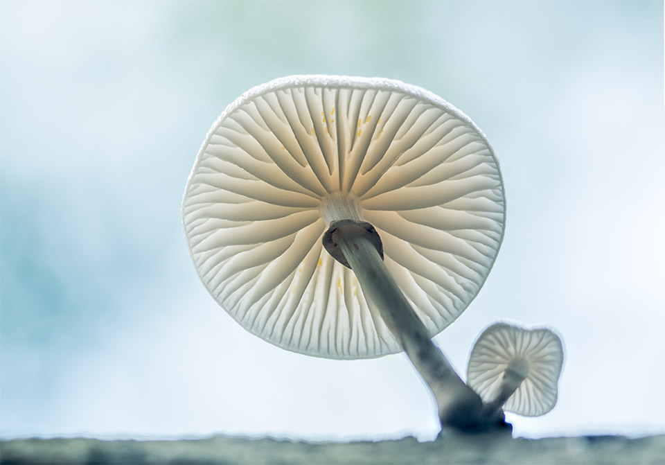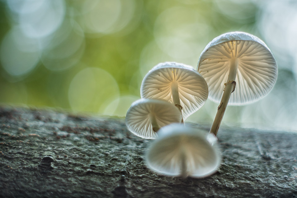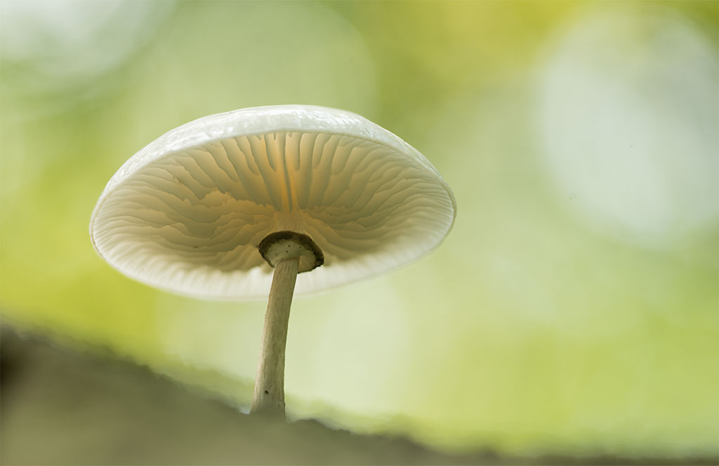 Broos en fragiel met een laag glanzende glazuur. Schitterend wit, haast doorschijnend porselein. Porseleinzwam. Met zijn velen groeien ze aan de beuk die het helaas niet zal overleven. Wanneer ze volgroeit zijn mogen ze een paar dagen hun schoonheid tonen waarna de tijd ze tot een hoopje bruine drap laat worden.
