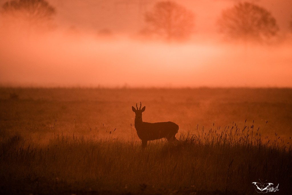 Soms mag je een spectaculaire zonsopgang met windstil, mistig weer meemaken. Alles wordt dan, wanneer je geluk hebt, gevuld met oranje, rood, geel en nog zoveel andere tinten. En als er dan ook nog hoofdrolspelers zijn in de vorm van een vogel of een ree, dan is dat met je neus in de boter vallen.