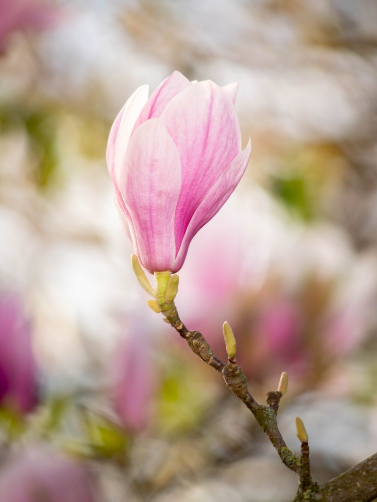 Ik woon in een “buitenwijk”van Rotterdam. En alhoewel men probeert om alles vol te bouwen, is er nog steeds relatief groen. Parken, woningen met tuintjes, open plekken met gras en brede wegen met veel groene bermen. En er zijn ook genoeg plekken waar een magnolia of Japanse kers staat.